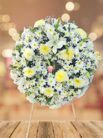 Corona fúnebre floral circular con 1.20 de alto y 60cm de ancho. Digna para honrar a tus seres queridos.
