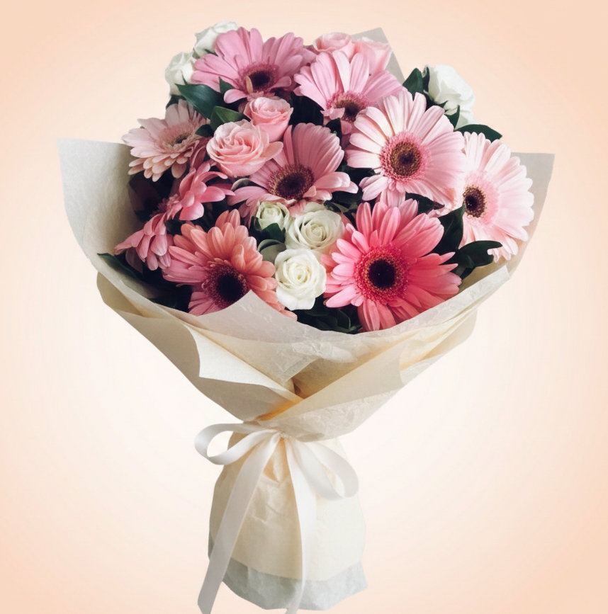 Rosas y Gerberas de tonos Rosas y blanco una combinación !Especial!———————————————————————-Si no requieres factura, ignora la siguiente nota. NOTA: El precio de este producto no incluye IVA, en caso de requerir factura favor de contactarnos antes de realizar tu compra, estaremos felices de ayudarte.